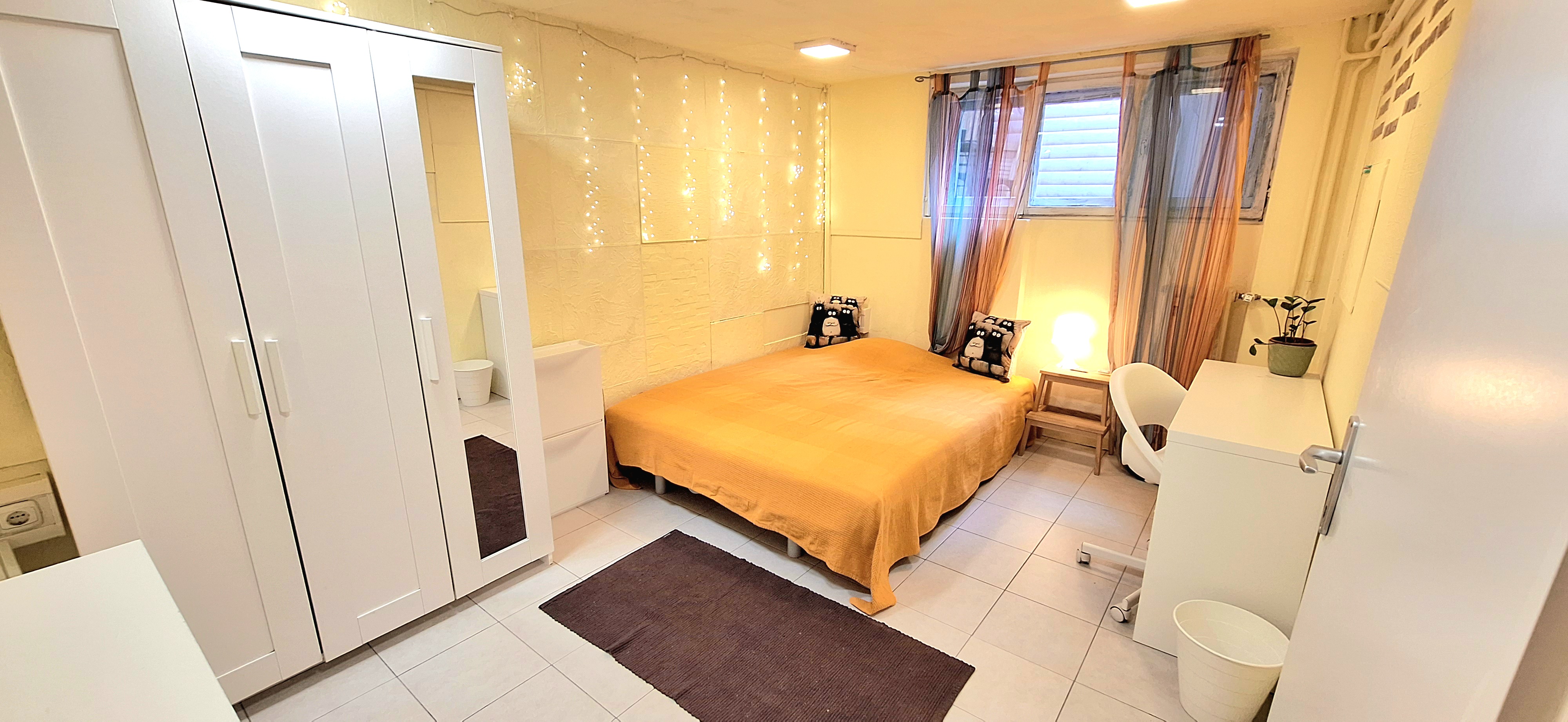 Our Earth room is fully furnished and comes with 1 cupboard, a table, chair 90x200cm bed, mirror, air con unit, central gas heater, a window that faces north to the garden and Fairy lights for the perfect mood. Use of following common spaces – bathroom (shower, washer, dryer, toilet and sink) fully equipped kitchen, lounge room , terrace and garden. Price 480 EUR + utilities.